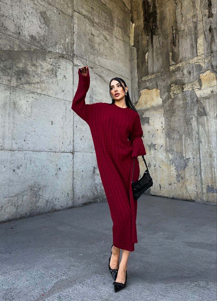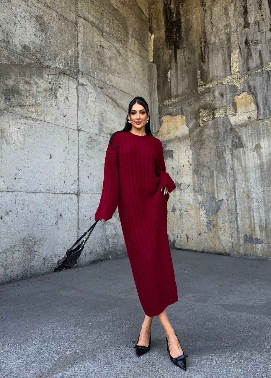 Bordo saç örgüsü dökümlü elbise