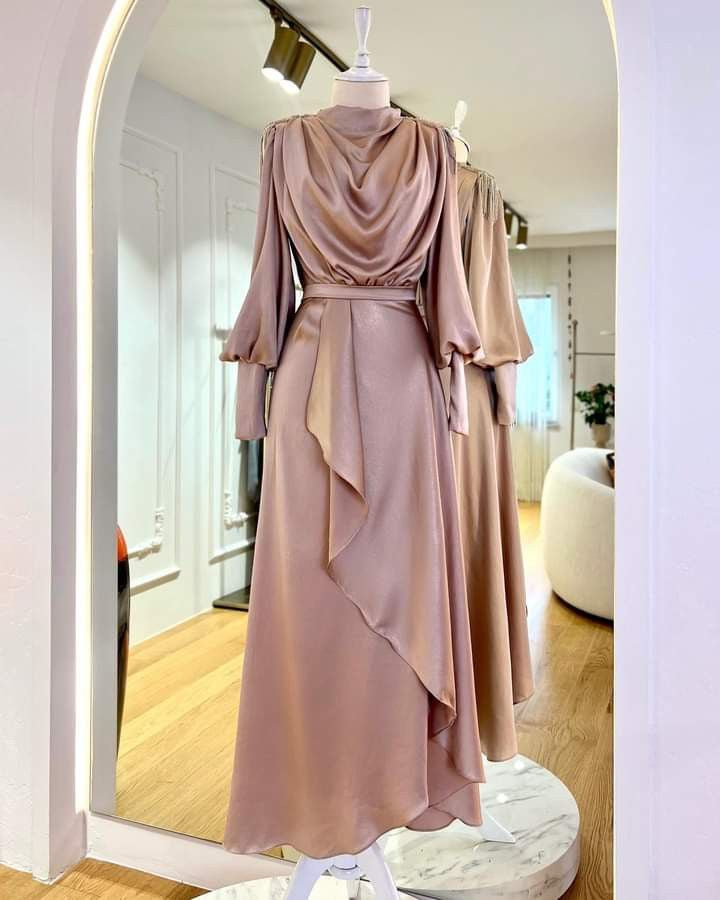 Degaje yaka balon kollu saten abiye