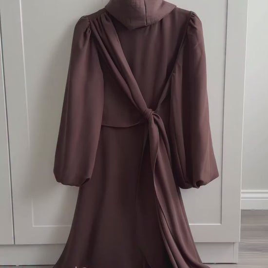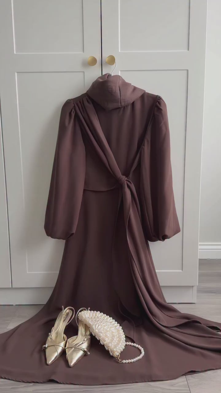 Tasarım ful astarlı tesettür tül elbise