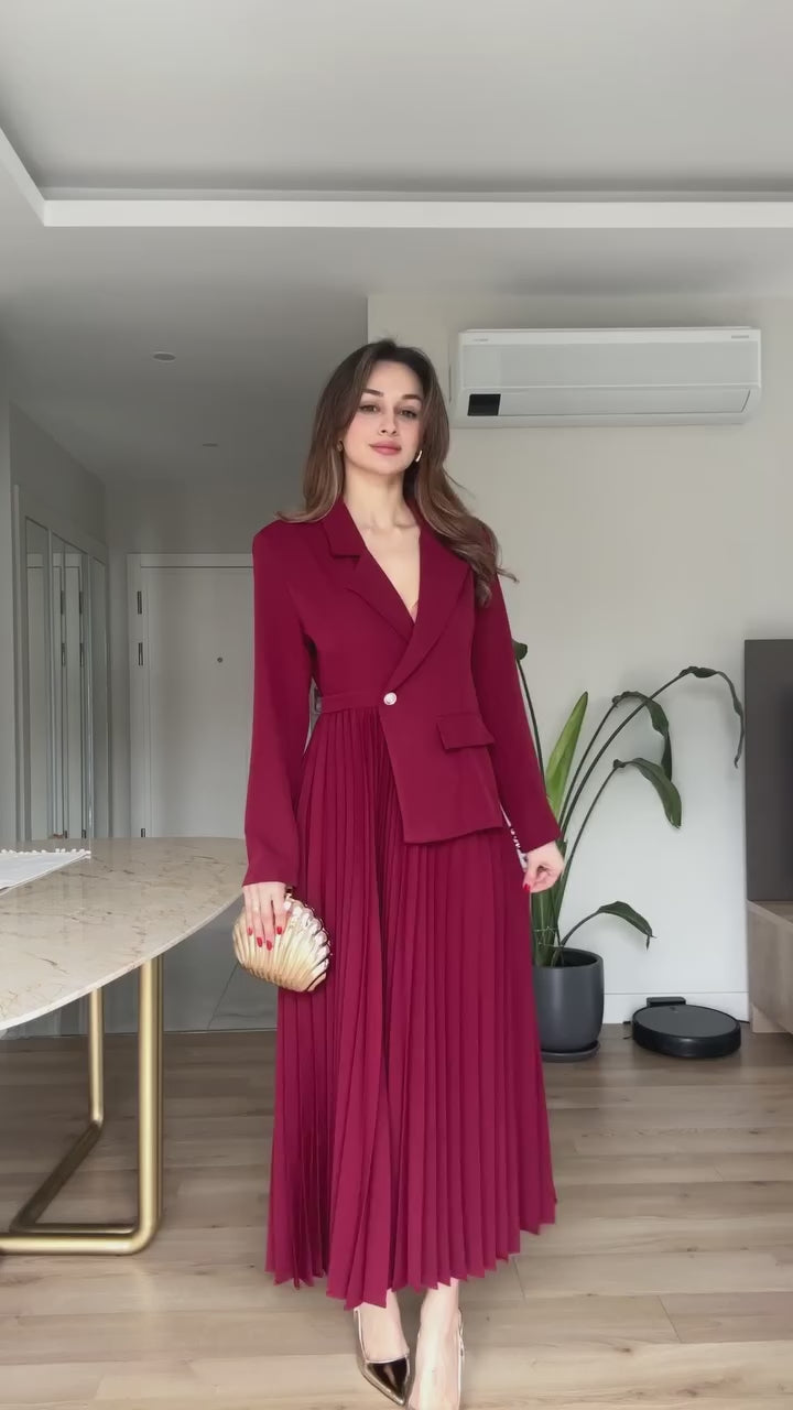 Tasarım kuru vaze bağlama pili seli etekli elbise